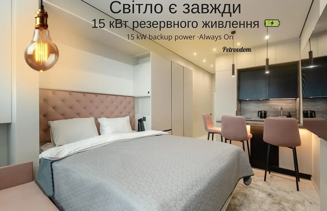 23-265A Manhattan, Beresteiskyi 11, Kyiv, Politekh Metro Nearby, Fantastic City View, 15 Kw Backup Power, Petrovdom Apartment оснащені мінікухнею для тих, хто бажає самостійно готувати їжу. Це помешкання розташоване поблизу від автобусної зупинки Vulytsia Sholudenka.